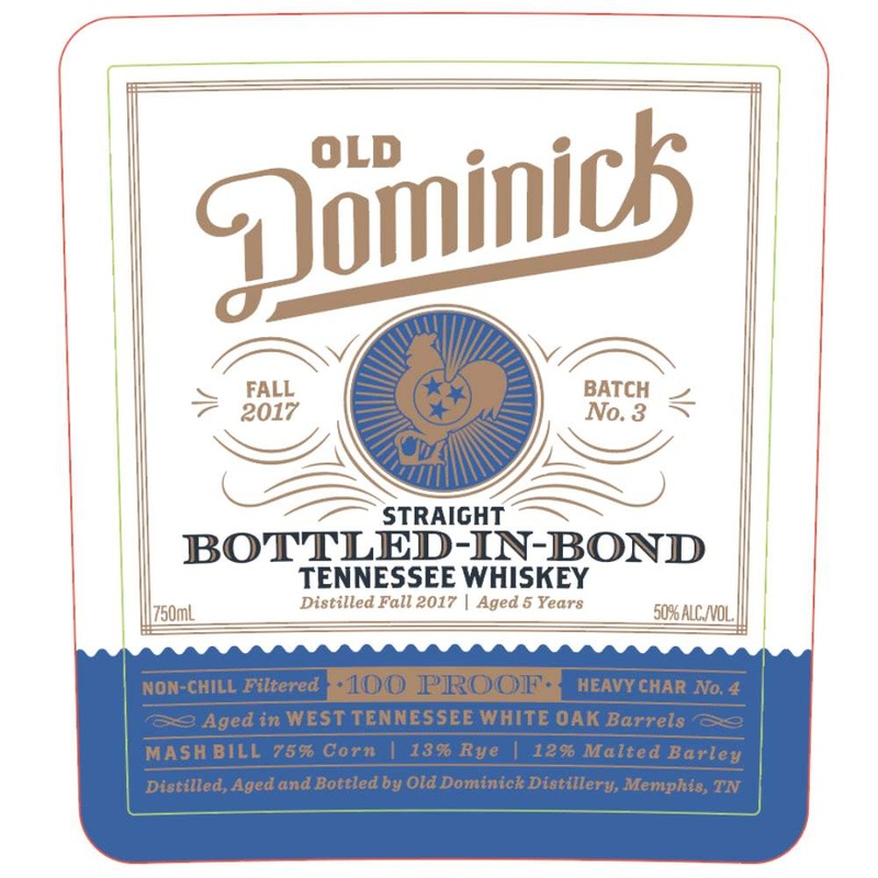 The mash bill for Old Dominick 5-Year-Old Bottled in Bond Tennessee Whiskey is 75% corn, 13% rye, and 12% malted barley.