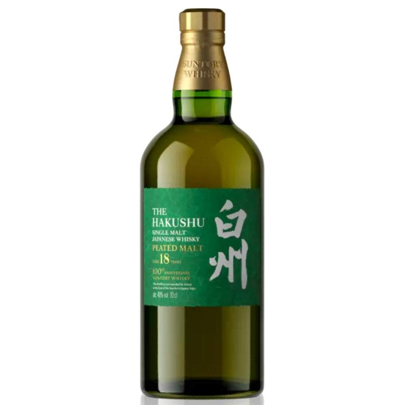 100th Anniversary Limited Edition. The Hakushu 18 Peated Malt is made up of carefully selected malt whiskies all aged for a minimum of 18 years in various casks, created in honor of Suntory Whisky's centenary. The Hakushu Distillery blenders work with peat